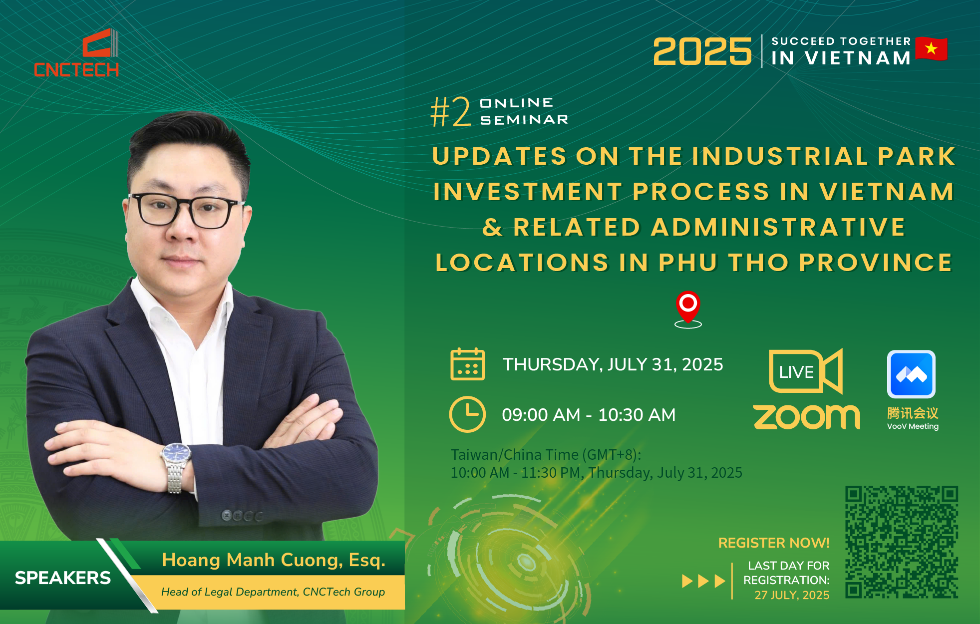 - Mr. Hoang Manh Cuong – Head of Legal Department, CNCTech Group – will provide in-depth insights into the legal process and investment procedures in Vietnam.